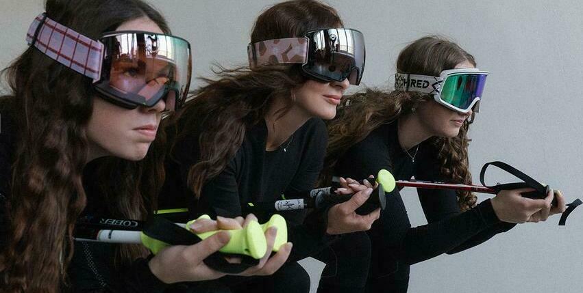 В комплект входит: лыжи/сноуборд, ботинки, палки, маска и шлем