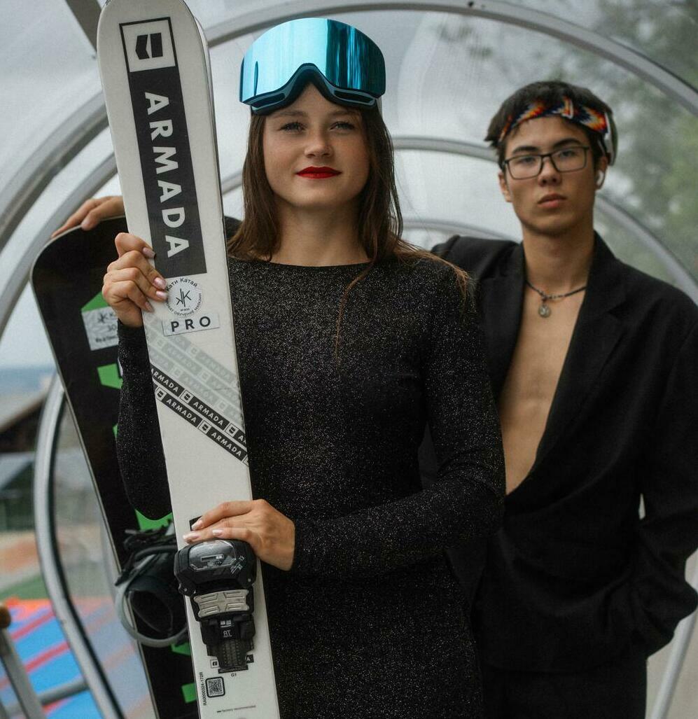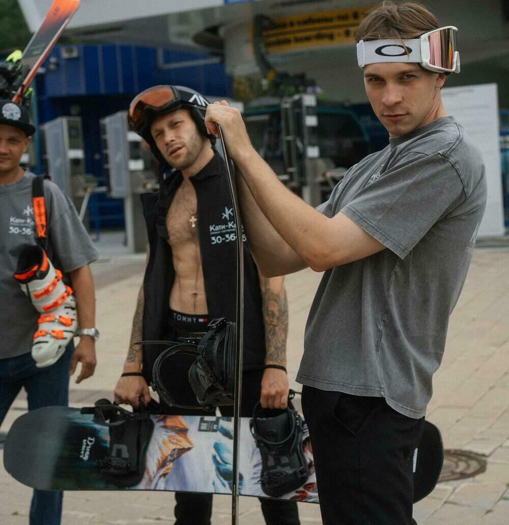 В комплект входит: лыжи/сноуборд, ботинки, палки, маска и шлем